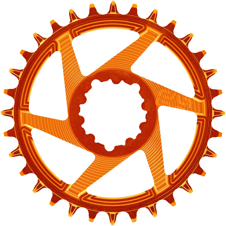 e*thirteen Helix R Guidering - 34t 11/12-Speed 3mm Offset SRAM 3-Bolt DM Naranja. Helix R SRAM Direct Mount Chainrings offer a true upgrade solution for SRAM 3-Bolt MTB crank users (including DUB) to achieve cross compatibility with both SRAM™ and Shimano™ 11 and 12-speed drivetrains.Forged from 7075- T7 aluminum then extensively CNC optimized for industry leading weights and a unique high-end full CNC aesthetic