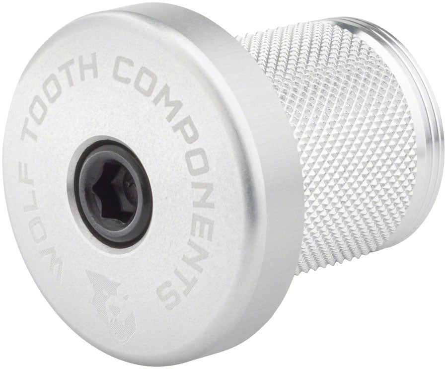 Wolf Tooth Compression Plug with Integrated Spacer Stem Cap Silver. The Wolf Tooth Compression Plug provides an anchor point to set the headset preload on road MTB or gravel bikes with carbon forks—essentially securing everything on the steerer tube. A stem cap with a 5mm integrated spacer is included which is important since many fork manufacturers require the steerer tube to extend above the top of the stem. It is available in multiple color options to add some style to your bike.Fits forks with 1 1/8" steerer tubes