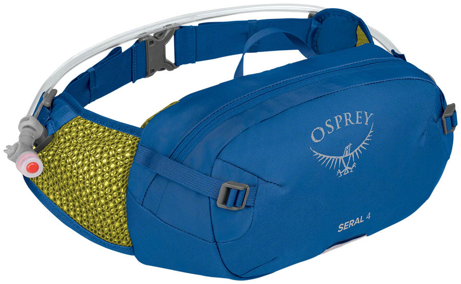 Osprey Seral 4 Lumbar Pack - One Size Postal Blue. The Osprey Seral lumbar pack is perfect for the minimalist looking for something other than a traditional over-the-shoulder pack. The Seral features a dedicated hydration compartment that stores an included 1.5L lumbar reservoir and compresses for stable carry. Dedicated hose magnet attaches the bite valve for easy access.Easily accessible zippered main compartment with internal tool organization