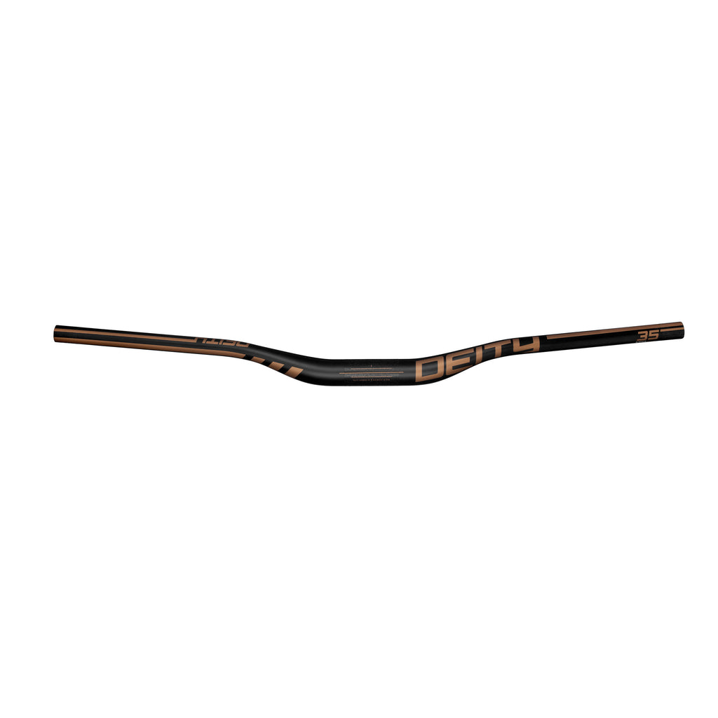 DEITY Speedway 35 Handlebar - Carbon 30mm Rise 810mm Width 35mm Clamp Black w/Bronze. Deity Speedway Handlebars: at 810mm wide with a 30mm rise this 35mm bore handlebar is impressively responsive and comfortable at the same time. Designed for the sweet spot that absorbs maximum vibration chatter and impact while maintaining the stiff reactive feeling that allows you to dance on the edge of catastrophe ever increasing your need for speed.Intended use: DH Enduro