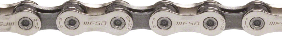 Full Speed Ahead Team Issue 9-Speed Chain with Quick Link. FSA Team Issue chains are nickel plated and chamfered to enhance shifting performance.