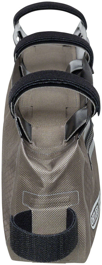 Ortlieb Bike Packing Toptube Frame Pack - 4 Liter Dark Sand. The Ortlieb Toptube Frame-Pack is the smart solution for all who want to use their frames main triangle for storage space without having to do without their water bottle. Waterproof to IP67 standard (with fully closed zipper) means your gear stays dry in the worst conditions- even during river crossings.Waterproof fabric seams and zipper to IP67 standards