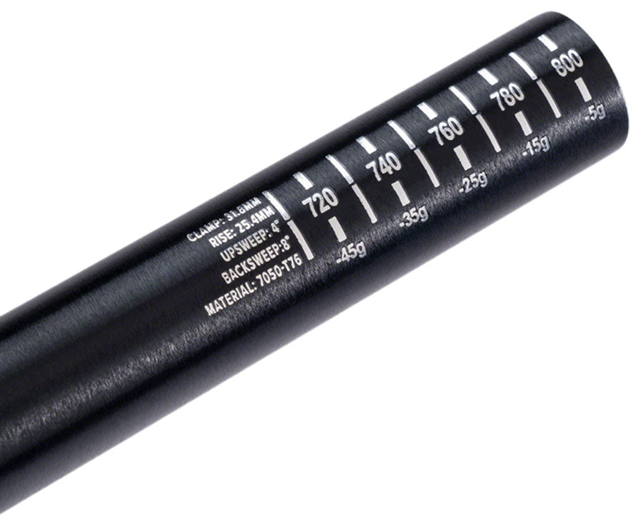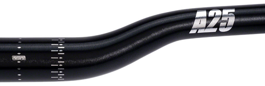 ProTaper A25 Handlebar - 810mm 25mm Rise 31.8mm Aluminum Polish Black. Thicker at the clamping area for strength and durability tapered down in low-stress sections to reduce weight.Cut marks provide a range of width options