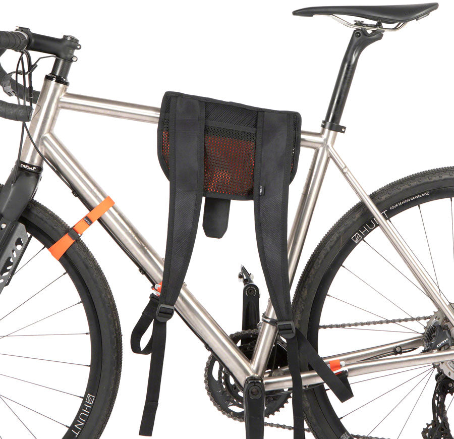 Restrap Hike A Bike Stowable Carrying Harness - Black. The Restrap Hike A Bike Harness makes it easy to carry your bike up tough hike a bike terrain hands free and well balanced. Stowable design doesn’t get in the way while riding and deploys in seconds. Adjustable mounting points to tailor the fit to most bikes