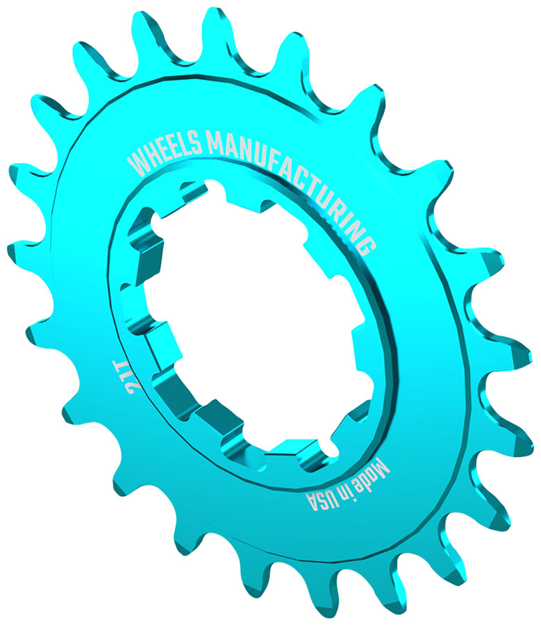 Wheels Manufacturing SOLO-XD Cog - 21t Teal. Wheels Mfg. SOLO-XD and SOLO-SPLINE Single Speed cogs are constructed with high-end 7075 aluminum and designed with narrow to wide alternating tooth pattern allowing for superior chain retention. Cogs are optimized for use with Wheels Mfg. SOLO-XD XD/XDR and SOLO-SPLINE Single Speed Conversion kit carrier systems only.Crafted with high-end 7075 aluminum for light weight and extreme durability