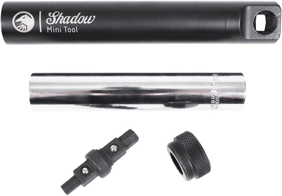 Shadow Mini-Tool combines the 3 most used tools into 1 compact and convenient package. The strong steel main tube houses a deep 17mm socket for all peg lengths and a custom designed investment cast 3/8" socket adaptor with 6mm and 8mm hex heads. The Shadow Mini-Tool handles those quick fixes while out in the streets or a great tool to travel with near or far.Includes 6mm / 8mm hex and 17mm deep socket Investment cast forged and CNC steel construction 167mm length / 26mm diameter Weight: 16.3 oz