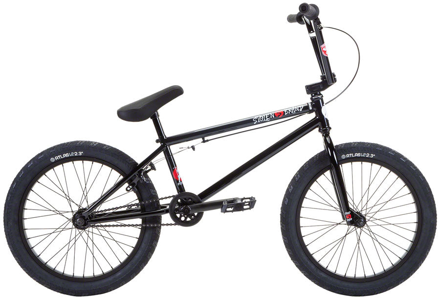 Stolen Overlord BMX Bike - 20.75" TT Black. The new upgraded Overlord now has a longer top tube sealed integrated headset sealed hubs Mythos pedals Sumo Guard sprocket & two pegs make this package ready to hit the streets.Hand-welded 1020 Hi-Ten frame