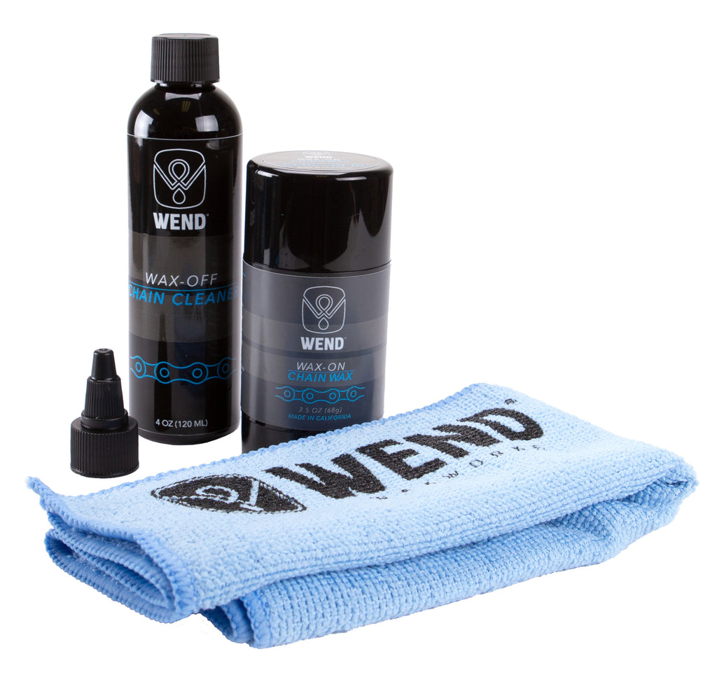 - Kit contains: one 2.5oz tube of wax paste, one 4oz bottle of Wax-Off natural chain cleaner and one Wend microfiber towel